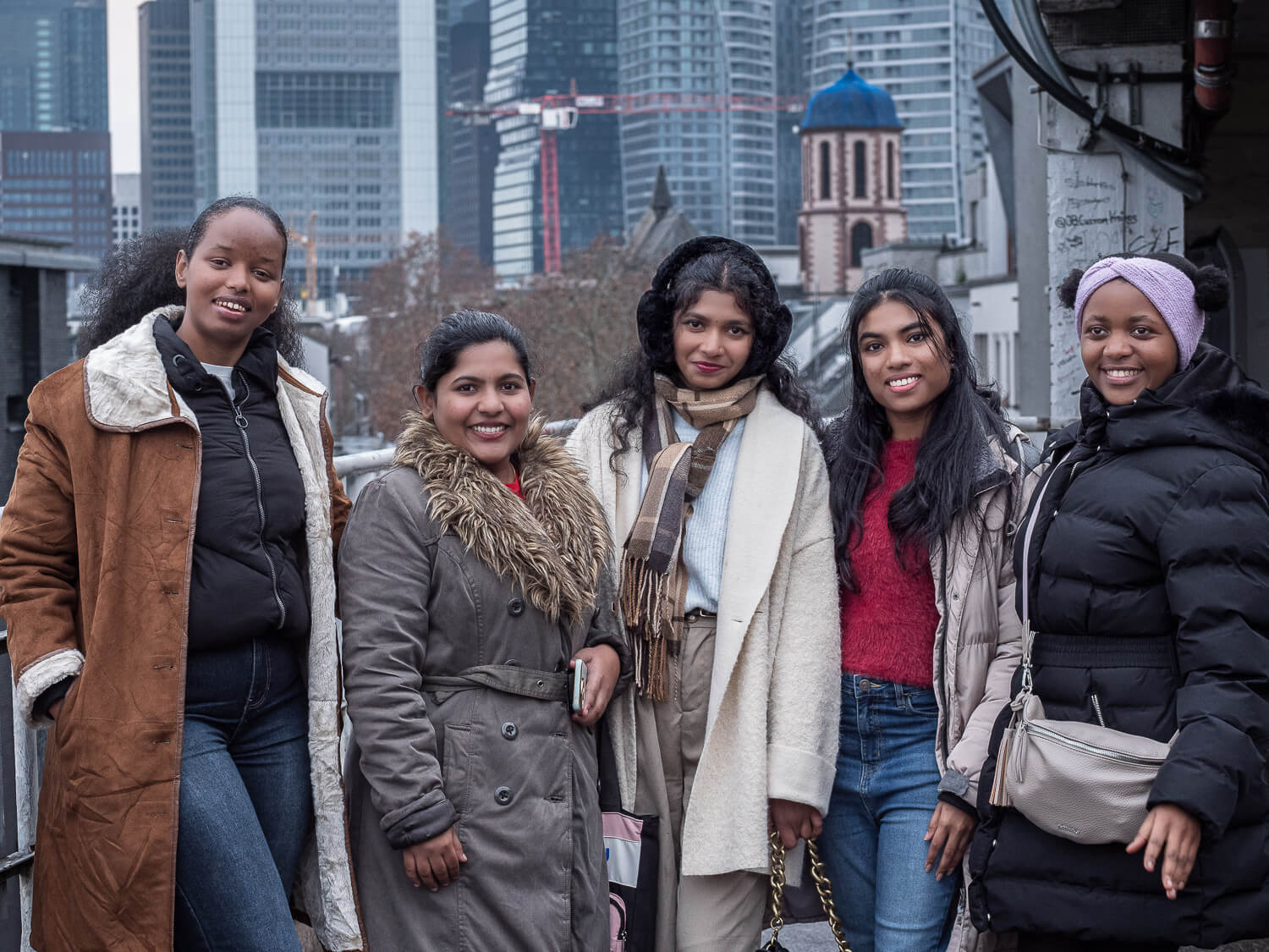 Unser Treffpunkt war Westhafen in Frankfurt, wo wir zunächst eine gemütliche Kennenlernrunde hatten. Hier konnten die Au-pairs Kontakte knüpfen und sich austauschen. Anschließend begaben wir uns zu verschiedenen Locations in Westhafen, um ein paar schöne Einzelporträts zu machen.